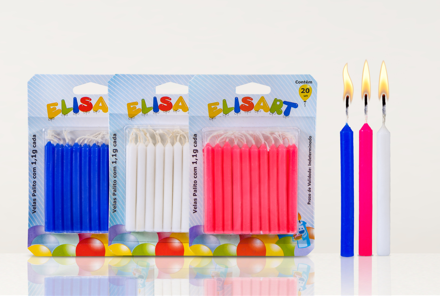 Nossas Velas Palito são produzidas com matérias primas certificadas e desenvolvida em parceiros com qualidade assegurada. Cores firmes.